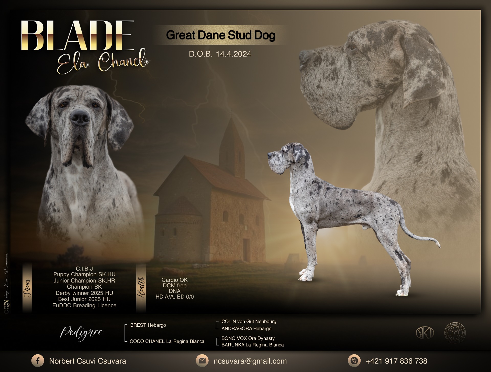 EuDDC breeding license, DNA, Cardio OK, DCM free